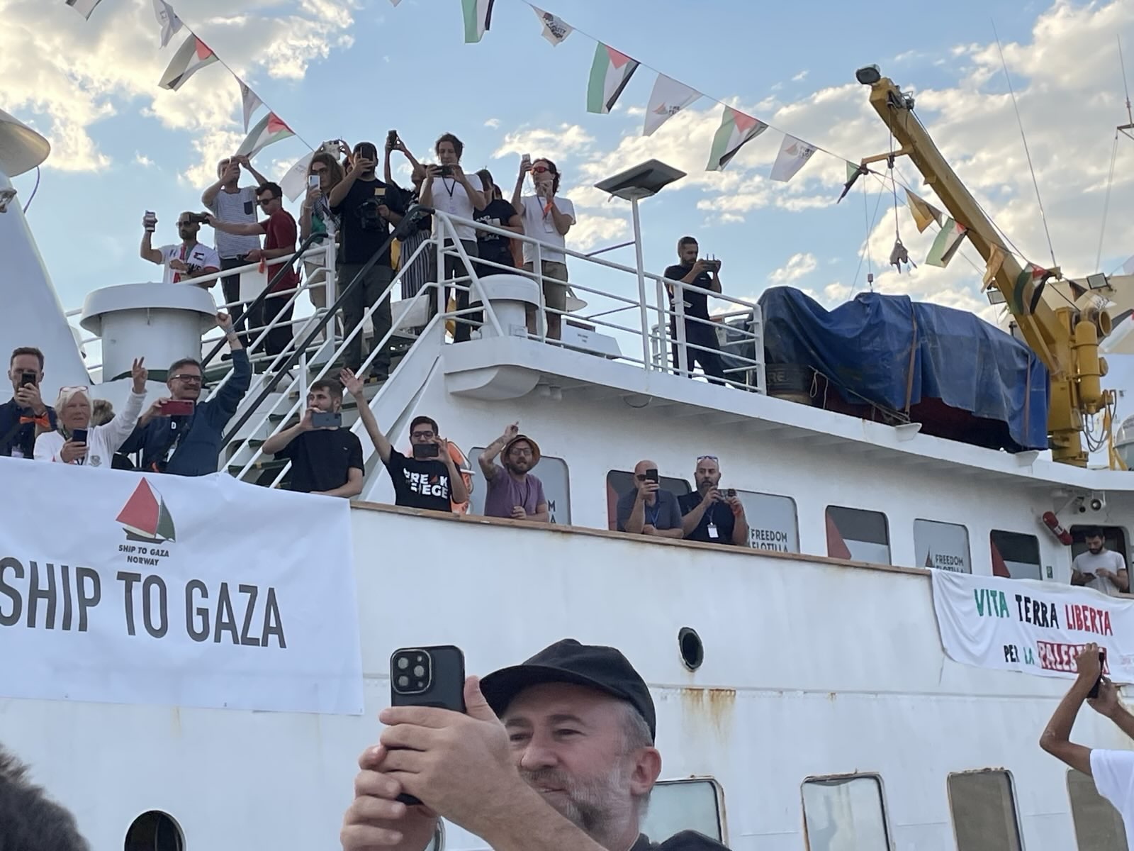 There were approximately 50 Italians onboard the GSF, including four parliamentarians belonging to the Italian Opposition: the European Parliament members Benedetta Scuderi and Annalisa Corrado, as well as Partito Democratico lawmaker Arturo Scotto and Senator Marco Croatti, a member of the populist Movimento 5 Stelle.