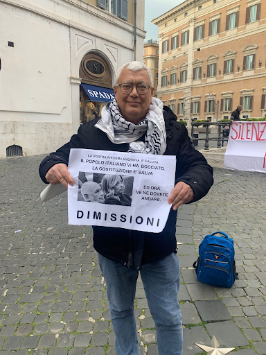 Protestors gathered outside of Palazzo Montecitorio in Rome – the seat of the Italian Chamber of Deputies – on Monday and Tuesday, celebrating at Meloni’s expense and demanding her resignation.